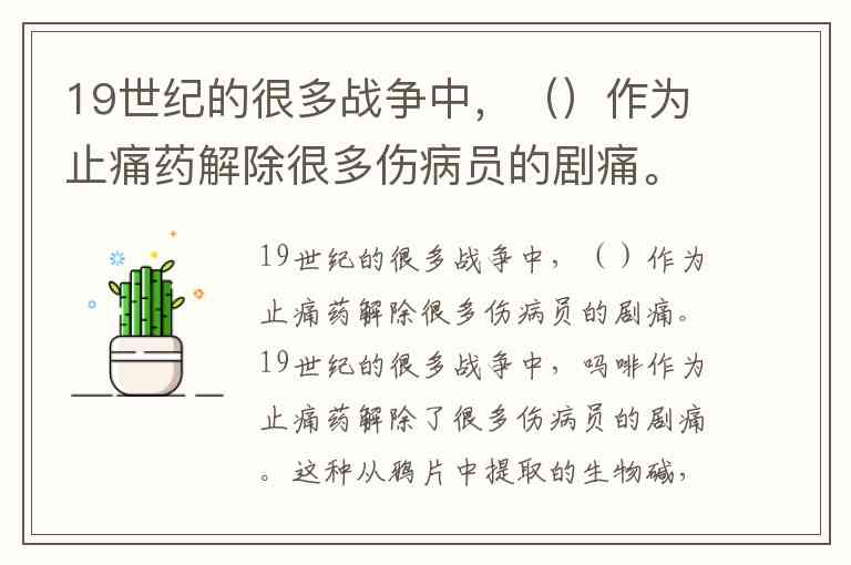 19世纪的很多战争中,()作为止痛药解除很多伤病员的剧痛。