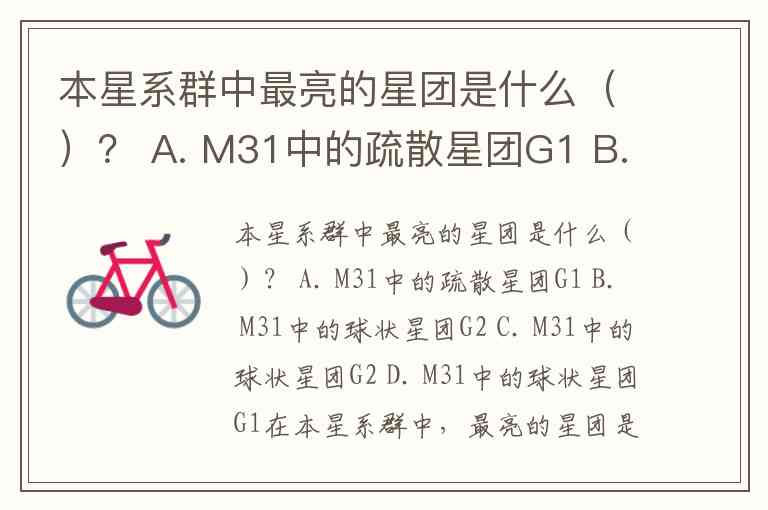 本星系群中最亮的星团是什么()? A. M31中的疏散星团G1 B. M31中的球状星团G2 C. M31中的球状星团G2 D. M31中的球状星团G1