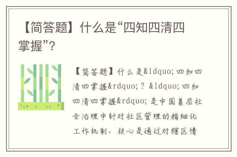 “四知四清四掌握”是中国基层社会治理中针对社区管理的精细化工作机制,核心是通过对辖区情况的动态掌握,实现服务与管控的精准化。该机制最初源于新疆基层治理实践,后逐步推广至全国多地社区,成为基层党组织和社区工作者的基础工作方法。