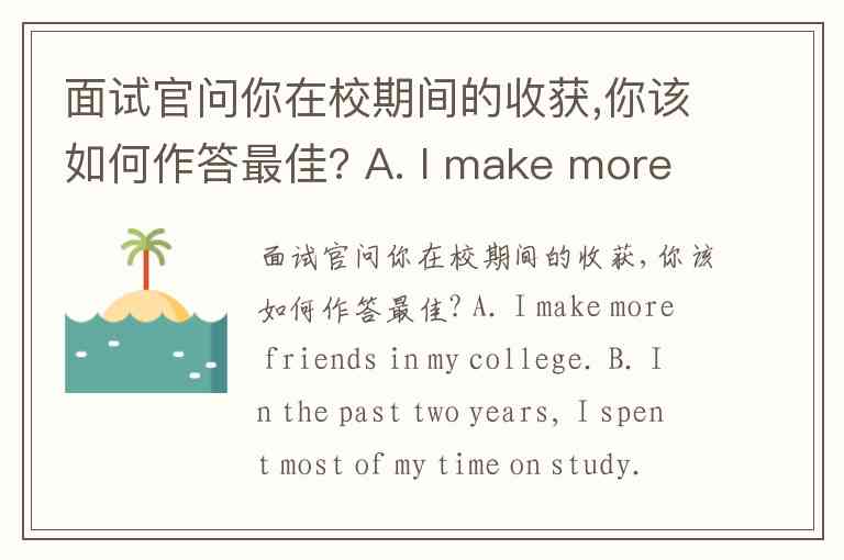 面试官问你在校期间的收获,你该如何作答最佳? A. I make more friends in my college. B. In the past two years, I spent most of my time on study. Besides, I have acquired basic knowledge of my major, both in theory and in practice. C. I like my English teacher very much.