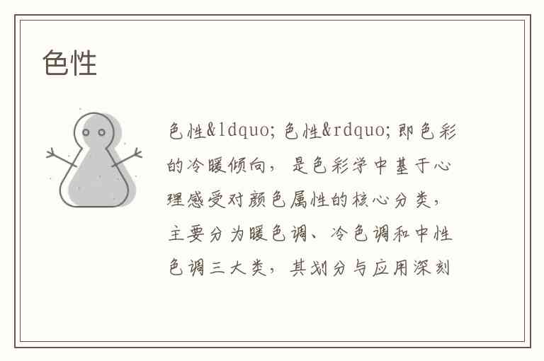 “色性”即色彩的冷暖倾向,是色彩学中基于心理感受对颜色属性的核心分类,主要分为暖色调、冷色调和中性色调三大类,其划分与应用深刻影响艺术创作、设计及日常生活中的视觉体验与情感传达。