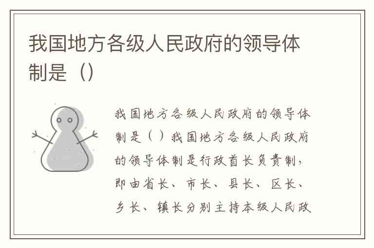 我国地方各级人民政府的领导体制是()
