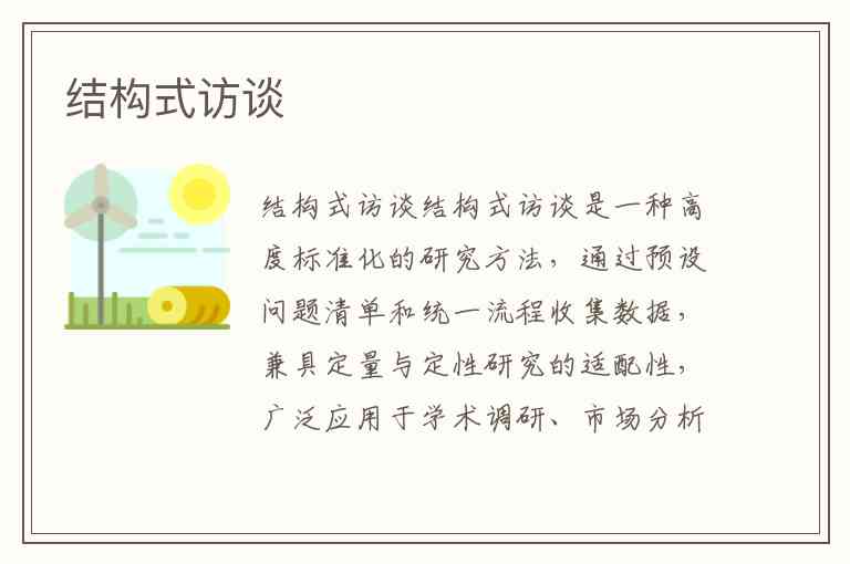 结构式访谈是一种高度标准化的研究方法,通过预设问题清单和统一流程收集数据,兼具定量与定性研究的适配性,广泛应用于学术调研、市场分析、人事招聘等领域。其核心特征是问题固定化、流程规范化、评估标准化,通过严格控制访谈变量确保数据的可靠性与可比性。