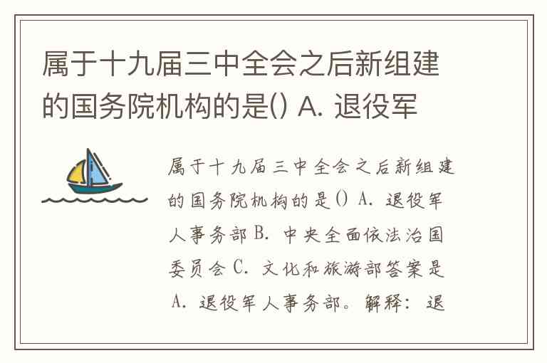 属于十九届三中全会之后新组建的国务院机构的是() A. 退役军人事务部 B. 中央全面依法治国委员会 C. 文化和旅游部