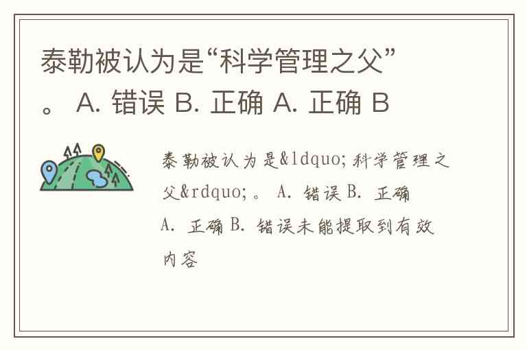 泰勒被认为是“科学管理之父”。 A. 错误 B. 正确 A. 正确 B. 错误