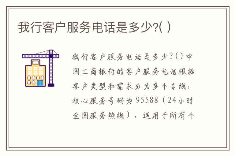 中国工商银行的客户服务电话根据客户类型和需求分为多个专线,核心服务号码为 95588(24小时全国服务热线),适用于所有个人和对公客户,可办理账户查询、转账汇款、缴费支付、投资理财等综合业务。