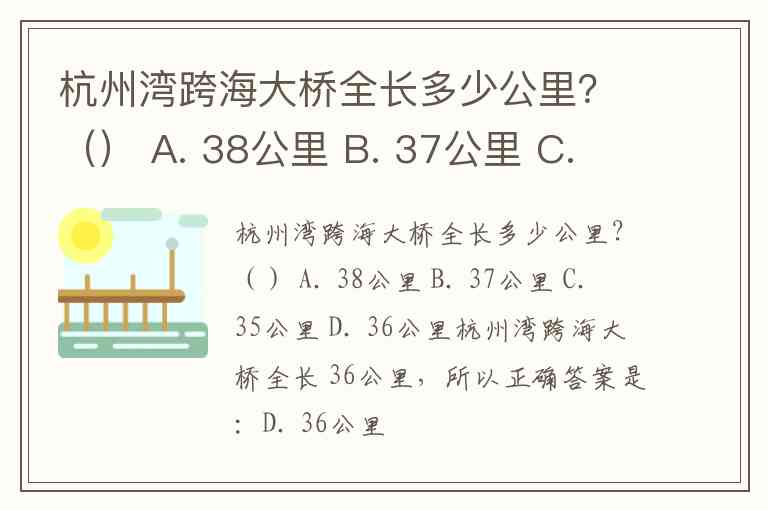 杭州湾跨海大桥全长多少公里?() A. 38公里 B. 37公里 C. 35公里 D. 36公里