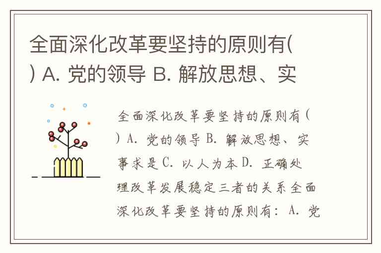 全面深化改革要坚持的原则有( ) A. 党的领导 B. 解放思想、实事求是 C. 以人为本 D. 正确处理改革发展稳定三者的关系