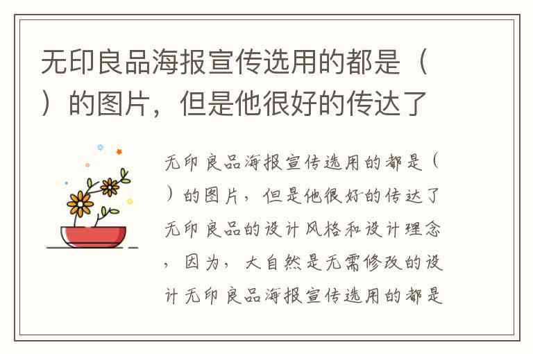 无印良品海报宣传选用的都是()的图片,但是他很好的传达了无印良品的设计风格和设计理念,因为,大自然是无需修改的设计