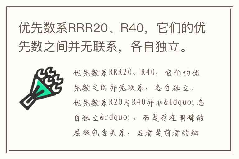 优先数系RRR20、R40,它们的优先数之间并无联系,各自独立。