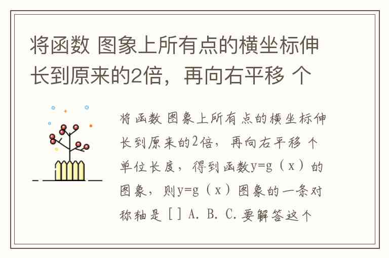 对于变换后的函数 ,首先,原来的对称轴是 ,然后经过上述变换后,新的对称轴会发生相应的变化。由于这个变换涉及到横坐标的拉伸和移动,对称轴的位置也会相应地变化。