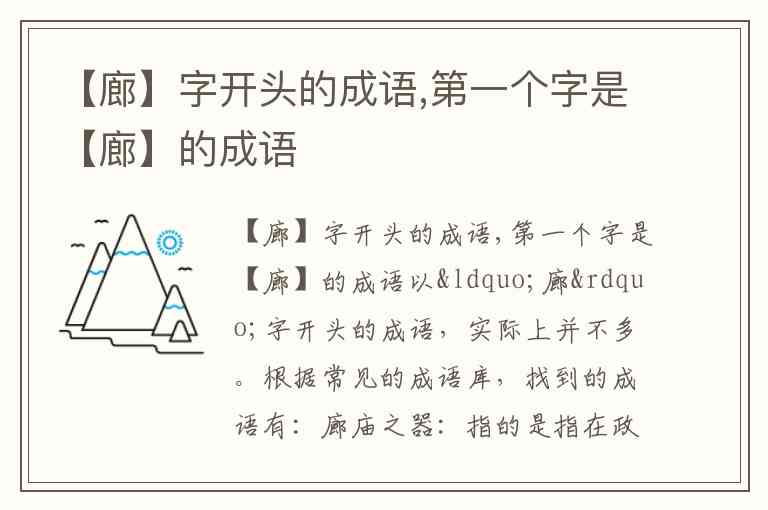 以“廊”字开头的成语,实际上并不多。根据常见的成语库,找到的成语有: