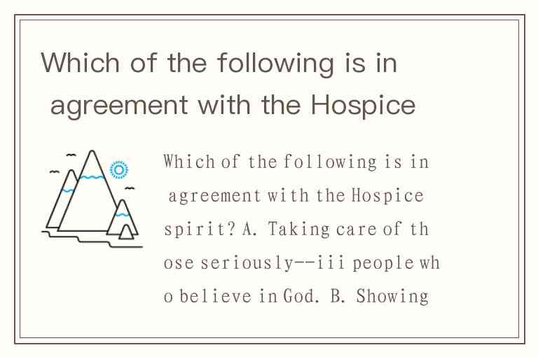 Which of the following is in agreement with the Hospice spirit? A. Taking care of those seriously--iii people who believe in God. B. Showing love for those who live in these western is lands. C. Freeing white patients from pain and comforting their fears, and supporting their loved ones. D. Loving and helping those of the terminally ill.