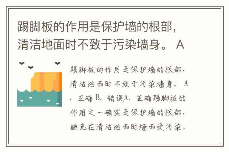 踢脚板的作用之一确实是保护墙的根部,避免在清洁地面时墙面受污染。此外,它还能遮掩墙面与地板之间的缝隙,起到美观和防护作用。