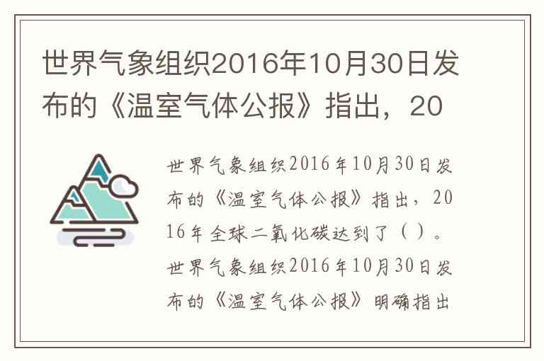 世界气象组织2016年10月30日发布的《温室气体公报》指出,2016年全球二氧化碳达到了()。
