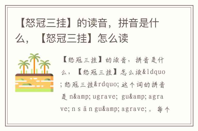 【怒冠三挂】的读音,拼音是什么,【怒冠三挂】怎么读