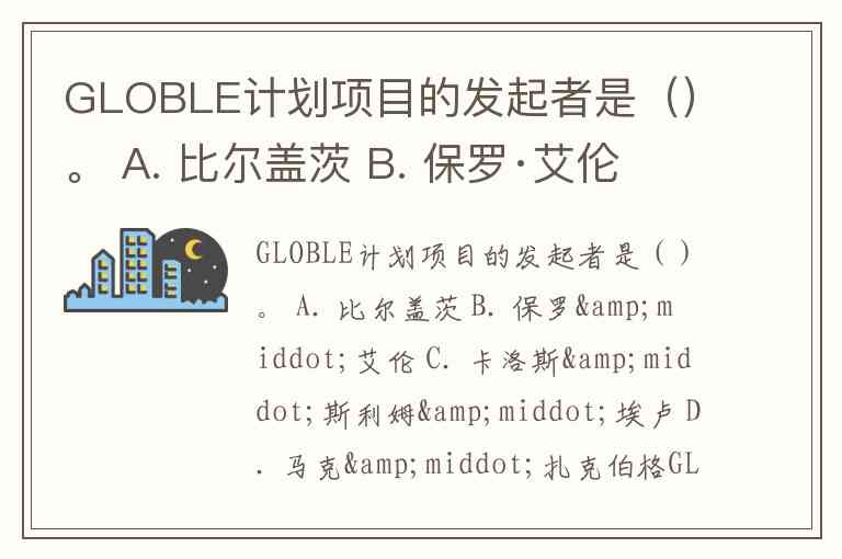 GLOBLE计划项目的发起者是()。 A. 比尔盖茨 B. 保罗·艾伦 C. 卡洛斯·斯利姆·埃卢 D. 马克·扎克伯格