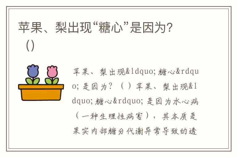 苹果、梨出现“糖心”是因为水心病(一种生理性病害),其本质是果实内部糖分代谢异常导致的透明结晶现象,而非品种特性或人工干预的结果。