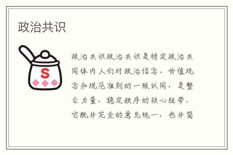 政治共识是特定政治共同体内人们对政治信念、价值观念和规范准则的一致认同,是整合力量、稳定秩序的核心纽带。它既非完全的意见统一,也非简单的利益妥协,而是通过对话协商形成的“最大公约数”,在现代民主政治中具有基础性地位。