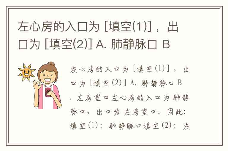 左心房的入口为 [填空(1)] ,出口为 [填空(2)] A. 肺静脉口 B. 左房室口