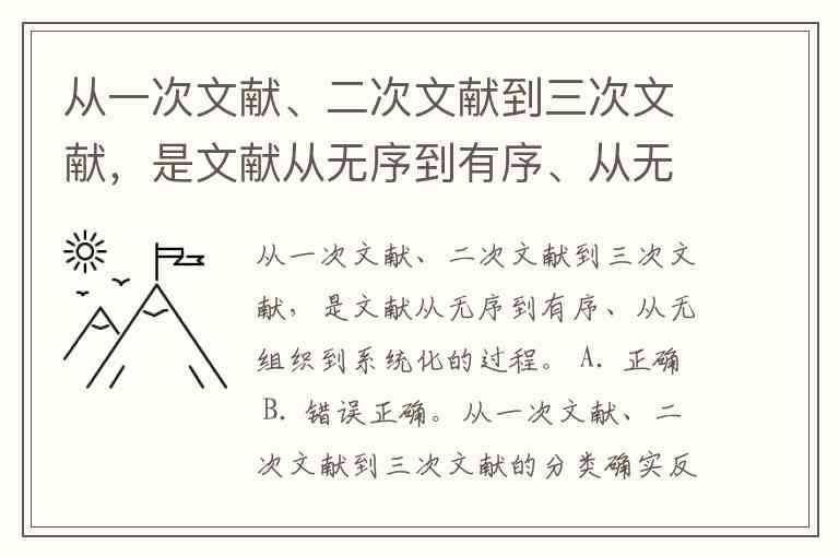 从一次文献、二次文献到三次文献的分类确实反映了文献的逐步系统化和组织化过程: