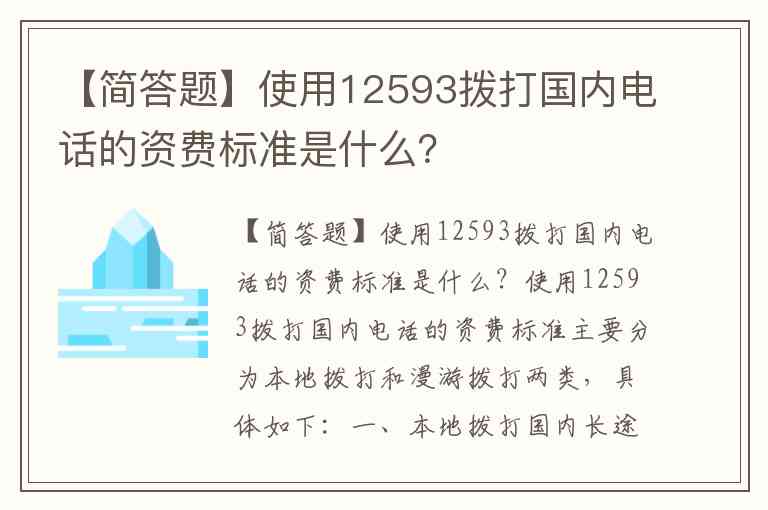 【简答题】使用12593拨打国内电话的资费标准是什么?