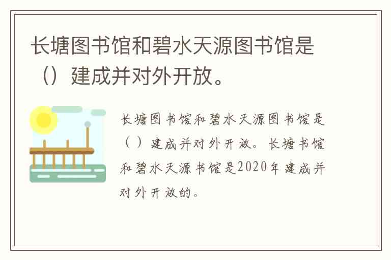 长塘图书馆和碧水天源图书馆是()建成并对外开放。