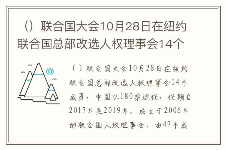 第71届联合国大会10月28日在纽约联合国总部改选人权理事会14个成员,中国以180票连任,任期自2017年至2019年。
