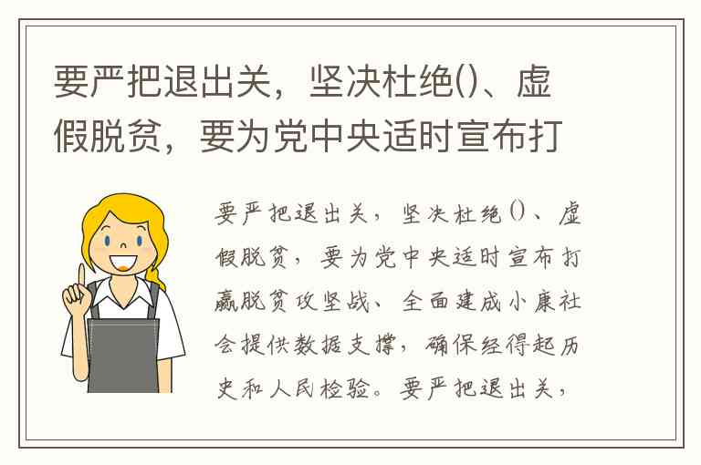 要严把退出关,坚决杜绝数字脱贫、虚假脱贫,要为党中央适时宣布打赢脱贫攻坚战、全面建成小康社会提供数据支撑,确保经得起历史和人民检验。