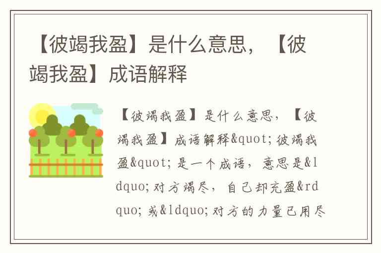 【彼竭我盈】是什么意思,【彼竭我盈】成语解释