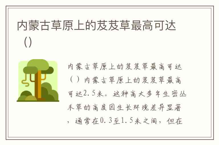 内蒙古草原上的芨芨草最高可达2.5米。这种高大多年生密丛禾草的高度因生长环境差异显著,通常在0.3至1.5米之间,但在地下水丰富的低洼河谷、湖边或盐碱滩沙质土壤中,能长到2米以上,极端情况下可达2.5米。