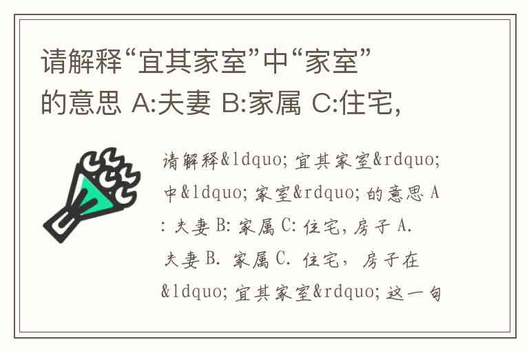 请解释“宜其家室”中“家室”的意思 A:夫妻 B:家属 C:住宅,房子 A. 夫妻 B. 家属 C. 住宅,房子