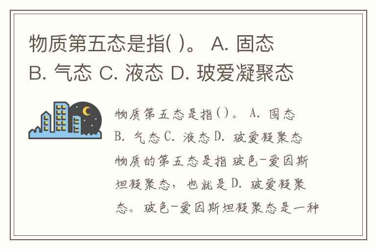 物质第五态是指( )。 A. 固态 B. 气态 C. 液态 D. 玻爱凝聚态