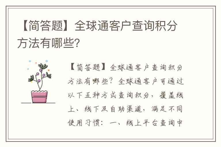 全球通客户可通过以下五种方式查询积分,覆盖线上、线下及自助渠道,满足不同使用习惯: