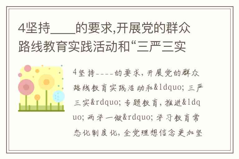 4坚持____的要求,开展党的群众路线教育实践活动和“三严三实”专题教育,推进“两学一做”学习教育常态化制度化,全党理想信念更加坚定、党性更加坚强。 A. 照镜子 B. 正衣冠 C. 洗洗澡 D. 治治病