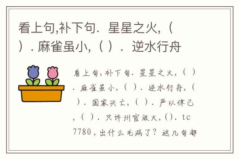 看上句,补下句. 星星之火,( ). 麻雀虽小,( ). 逆水行舟,( ). 国家兴亡,( ). 严以律己,( ). 只许州官放火,( ). tc7780 ,出什么毛病了?