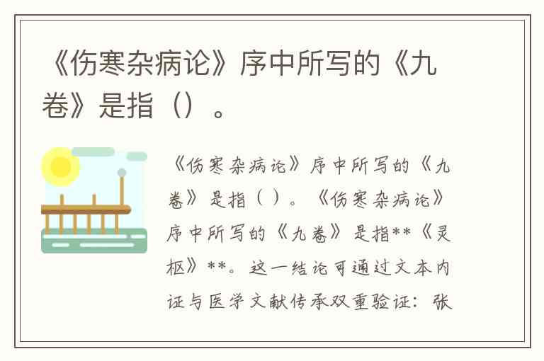 排除《素问》:序中已单独列出《素问》,二者为并列关系,故《九卷》不可能是《素问》的别称。有观点认为“九卷是《素问》共有九卷”,但这与张仲景将二者分列的表述矛盾,且《素问》在汉代已有固定名称,无需再以“九卷”指代。