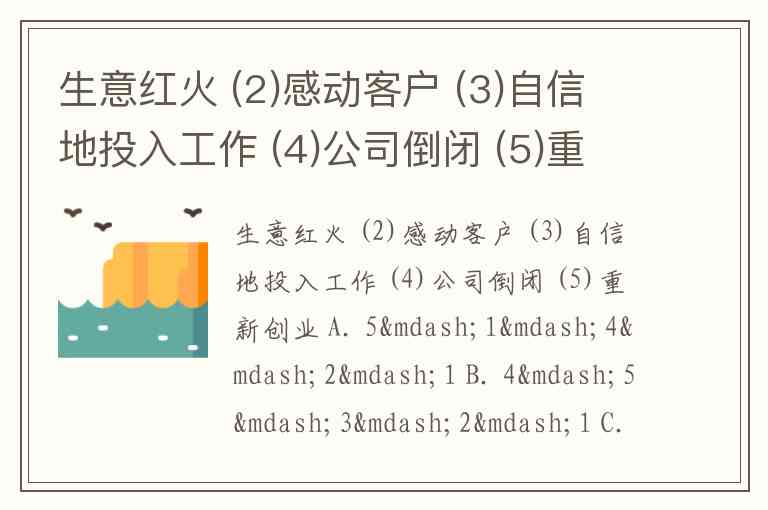 生意红火 (2)感动客户 (3)自信地投入工作 (4)公司倒闭 (5)重新创业 A. 5—1—4—2—1 B. 4—5—3—2—1 C. 5—3—1—4—2 D. 3—4—1—2—5