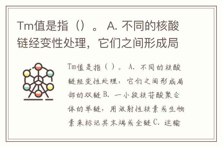 Tm值是指双链DNA在50%变性时的温度。也就是说,它是指使得50%的双链DNA分解为单链DNA的温度。