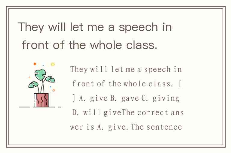 They will let me a speech in front of the whole class. [ ] A. give B. gave C. giving D. will give