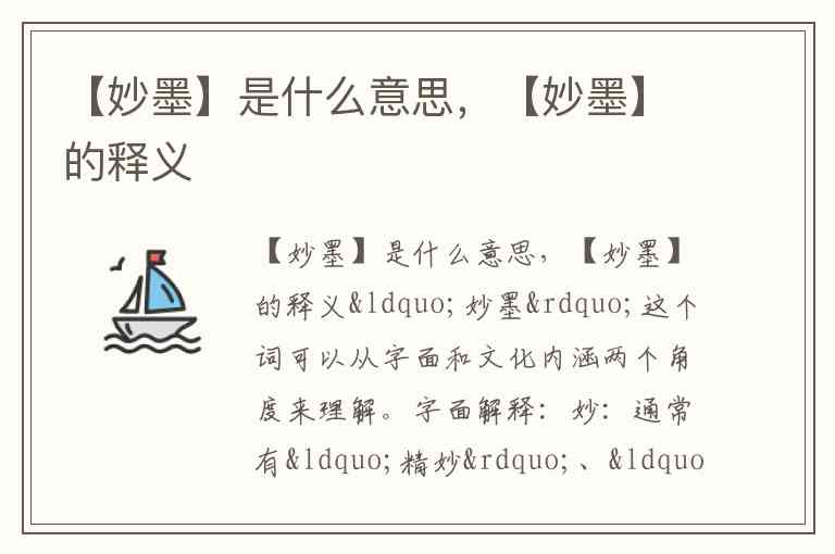 “妙墨”这个词可以从字面和文化内涵两个角度来理解。
