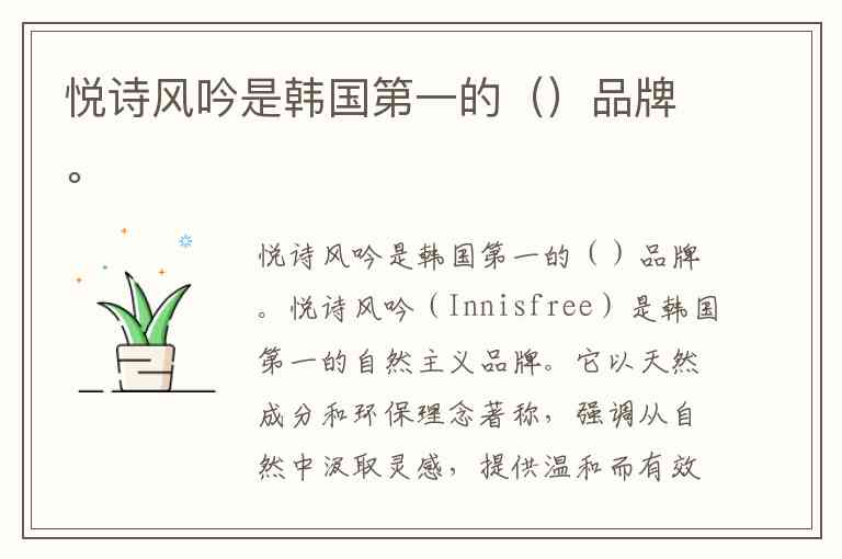 品牌。它以天然成分和环保理念著称,强调从自然中汲取灵感,提供温和而有效的护肤和化妆品。