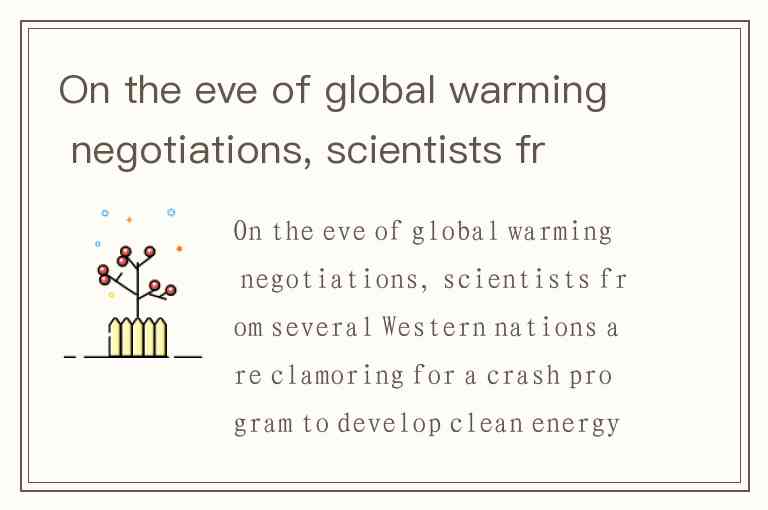 On the eve of global warming negotiations, scientists from several Western nations are clamoring for a crash program to develop clean energy that would rival the Manhattan Project and the Apollo mission to the moon. Writing in Thursday’s issue of the journal Nature, scientists from North America and Europe predicted that global warming will soon become the environmental equivalent of the Cold War as the world’s increasing reliance on fossil fuels releases more carbon dioxide and other heattrapping pollutants into the atmosphere. The 11 scientists urged negotiators at environmental talks scheduled to begin Nov. 2 in Buenos Aires, Argentina, to push for a mobilization of scientific resources to develop alternative forms of energy, such as solar, wind and nuclear power. "Developing and commercializing carbon-flee power technologies by the mid-21st century could require efforts, perhaps international, pursued with the urgency of the Manhattan Project or the Apollo space program," said Martin Hoffert, a physicist at New York University. Only 20% or less of today’s energy use comes from carbon-free sources. The Nature paper is unusual because it contains broad policy recommendations. Normally, the journal publishes straightforward scientific studies. Last year, governments meeting in Kyoto, Japan, agreed to emission reductions by the United States, Japan, the 15-nation European Union and 21 other industrial nations. The nations are to cut their output of carbon dioxide and other greenhouse gases to 5% below their 1990 levels by 2012. This year, negotiators for 166 nations are meeting to determine how each country will achieve the reductions. To some, rising annual average temperatures in the 1990s amount to early proof that global warming has arrived and that the current treaty won’t protect nations from climatic upheaval during the 21st century. Some scientists said global warming is inevitable and no amount of effort—not even a crash program—will pr it. "We will experience a substantial amount of further climate change even if we make huge cuts in emissions," said Martin Parry of University College in London. Others said there are many ways of reducing global warming without mobilizing scientists worldwide. Energy conservation and efficiency, such as greater use of cleaner-burning natural gas and nuclear power, might be a cheaper solution, they say. Smokestack and tailpipe controls, as well as planting trees, can reduce pollution, too. Countries can also provide utilities with financial incentives to invest in experimental technologies. Even optimists at the meeting agreed that demand for crude oil will outstrip production by 2020 and that worldwide reserves will be exhausted by 2100. Oil shortages and higher prices will make the world a more erous place, they warned. What is particular about the Nature paper A. It presents a clear picture of the precent environmental problem before us. B. It contains very convincing and straightforward scientific statistics. C. It advocates the study and use of non-polluting sources of energy. D. It presents its findings about global warming and proposes some polices.