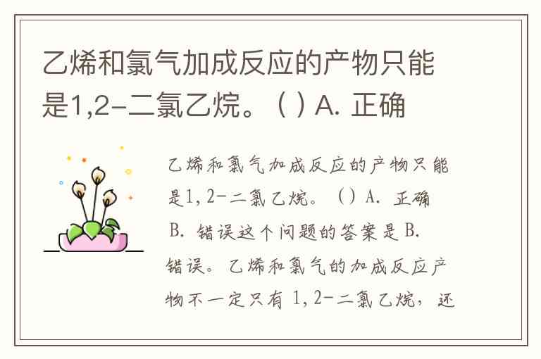 乙烯和氯气加成反应的产物只能是1,2-二氯乙烷。 ( ) A. 正确 B. 错误