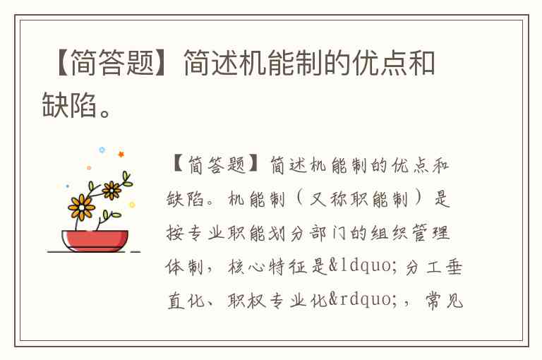【简答题】简述机能制的优点和缺陷。