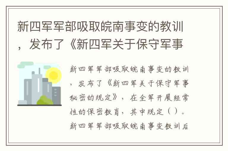 新四军军部吸取皖南事变教训后发布的《新四军关于保守军事秘密的规定》,在保密教育中明确规定部队番号、人员编制、武器弹药数量等一概不准公开宣布;部队番号和首长姓名一律按规定使用代号;一切重要文件书籍必须严密负责保管,即以上都正确(选项D)。这一综合性规定构建了覆盖军事信息、人员标识、文件管理的全链条保密体系。