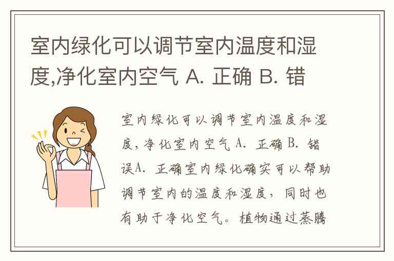 室内绿化可以调节室内温度和湿度,净化室内空气 A. 正确 B. 错误