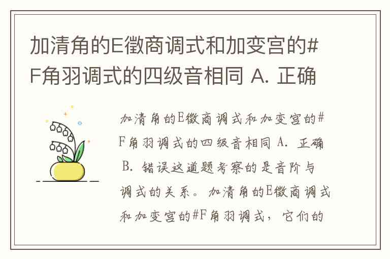加清角的E徵商调式和加变宫的#F角羽调式的四级音相同 A. 正确 B. 错误