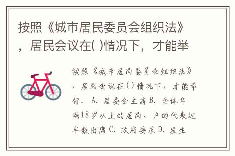 按照《城市居民委员会组织法》,居民会议在( )情况下,才能举行。 A. 居委会主持 B. 全体年满18岁以上的居民、户的代表过半数出席 C. 政府要求 D. 发生紧急事件 E. 全体出席会议人员