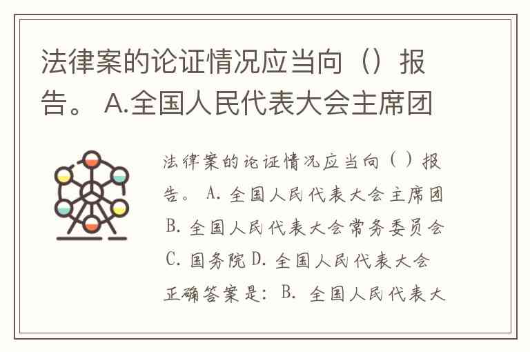 因此,法律案的论证情况应当向 全国人民代表大会常务委员会 报告。